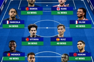 体育资讯1月3日讯 德国转会市场统计了2025年五大联赛球员俱乐部+国家队的胜场数量,并列出胜场最多阵容,凯恩、奥利塞、阿什拉夫在列。