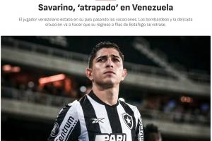 报道称,萨瓦里诺此前正在他的家乡度假,由于国内遭轰炸等一系列事件,委内瑞拉已进入紧急状态,该球员不得不留在该国,无法按时返回博塔弗戈进行训练。