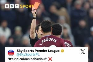 体育资讯12月01日讯 英超第13轮,利物浦2-0战胜西汉姆联,西汉姆中场帕奎塔比赛中因抗议判罚,被主裁连出两黄,红牌罚下。