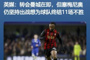 此前talkSPORT报道,塞梅尼奥坚持为伯恩茅斯出战(球员解约条款10号截止),希望帮助球队终结11场不胜。