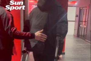赛后布拉德利拄着拐杖离开球场,伤情很重,据利物浦跟队透露,他的膝盖还戴着护具。