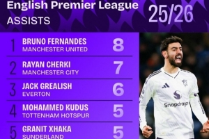 本赛季英超助攻榜: