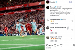 他也在赛后通过社媒晒出自己的比赛照,并配文:“没能带走3分,非常失望。不过还是要非常感谢球迷们,现场气氛太棒了!现在要专注于欧冠了。”