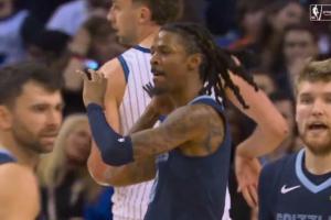 此前莫兰特因为两次使用不恰当庆祝动作,被NBA罚款7.5万美元巨款