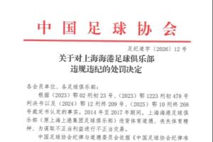 官方:上海海港为谋取不正当利益进行不正当交易,扣5分罚40万元