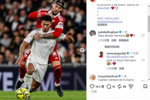 贝林厄姆留言调侃:“抱得太紧了吧,兄弟🤣❤️”