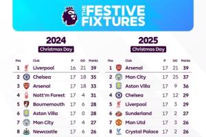 体育资讯12月25日讯 西方传统节日圣诞节之际,英超官方晒图对本赛季和上赛季的节礼日积分榜进行了对比。