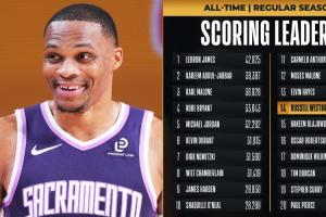 本场比赛,国王球星威少得到17分2篮板2助攻,NBA生涯常规赛总得分突破27000分(27001)大关,成为历史上第14位至少27000分的球员,得分排在威少前面一位的是埃尔文·海耶斯(27313分)。