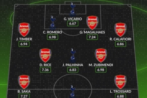 体育资讯2月22日讯 本轮英超迎来北伦敦德比大战,数据网站Whoscored也盘点了两队球员在本赛季英超场均评分最高阵容(至少10次出场):