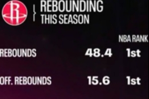 场均进攻篮板15.6个 联盟第1