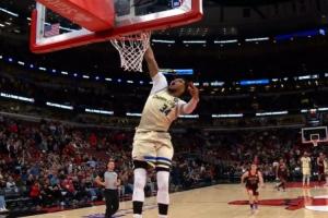 比赛垃圾时间,字母哥秀了个大风车暴扣,惹恼武切维奇,波蒂斯火上浇油引发多人冲突。