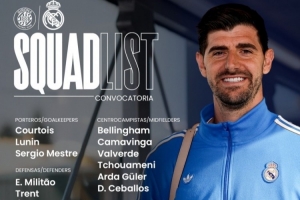 体育资讯11月30日讯 北京时间12月1日凌晨4:00,2025-26赛季西甲联赛第14轮,皇马将客战赫罗纳。赛前,皇马官方公布球队大名单,库尔图瓦、吕迪格和马斯坦托诺回归,劳尔·阿森西奥、赫伊森、卡瓦哈尔和阿拉巴缺席。