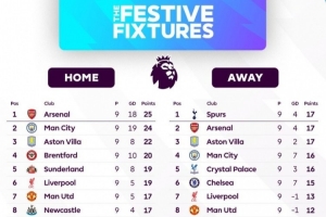 体育资讯12月30日讯 2025年即将结束,英超官方也统计了本赛季的主场拿分榜和客场拿分榜,阿森纳主场25分最多、客场17分和热刺、维拉同分但因进球数更少而屈居第二。