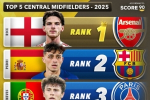 Score90评2025中场最佳:中场赖斯,攻击型贝林,防守型维蒂尼亚